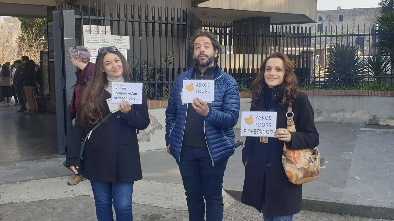 Our agency is called “Askos”, which is a rather symbolic name. In strict sense of the word, this is a type of ancient Greek vessel used to store liquids such as oil. It has a distinct flattened shape and a nice handle on top of it to allow for easier carrying. The founder of the agency, Emiliano, once found such Askos on a site. Since then it became for Emiliano the very embodiment of the thrill of exploration resulted in a discovery. For him this vase is a symbol of excitement from the wonderful moments of triumph over time and oblivion on a road where the thirst for knowledge has brought him. But the word “Askos” is also a reminder about the main responsibility of every guide – to answer questions brought up by the tourists. But there’s one important difference in our case: if you “ask us”, we won’t give you boring answers directly, but the very world of ancient and modern local culture will share their answers with you. We’ll care for the most effective way to bring you in contact with these fascinating worlds. The new name of the agency reflects changes in its scope, new mission and vision (previously it was called “Pompeiin”).